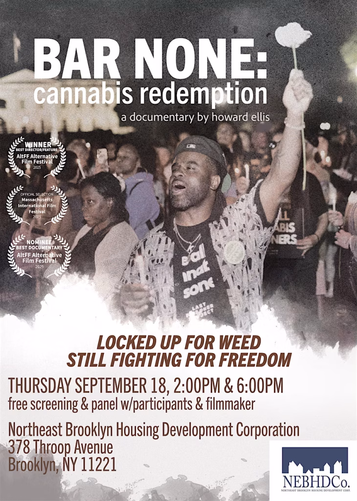 Come join us for the showing of the documentary Bar None:Cannabis Redemption, and a panel discussion with participants and filmmaker